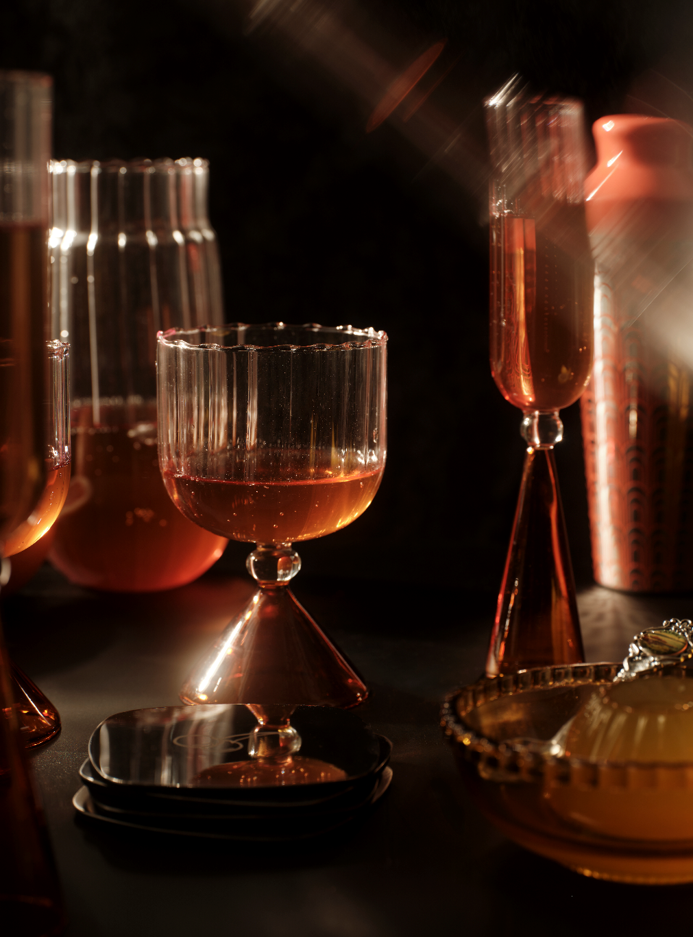 No one does sophisticated charm and intrigue quite like our Gatsby Goblet in Burnt Rose Pink. With its elevated stem, crystal-like-centrepiece and pop of colour. The Gatsby goblet was designed to be the life of the party whilst remaining the mysterious enigma at the heart of everyone’s desire. The Gatsby collection was designed with every great party in mind, for those who love to entertain and bring people together.